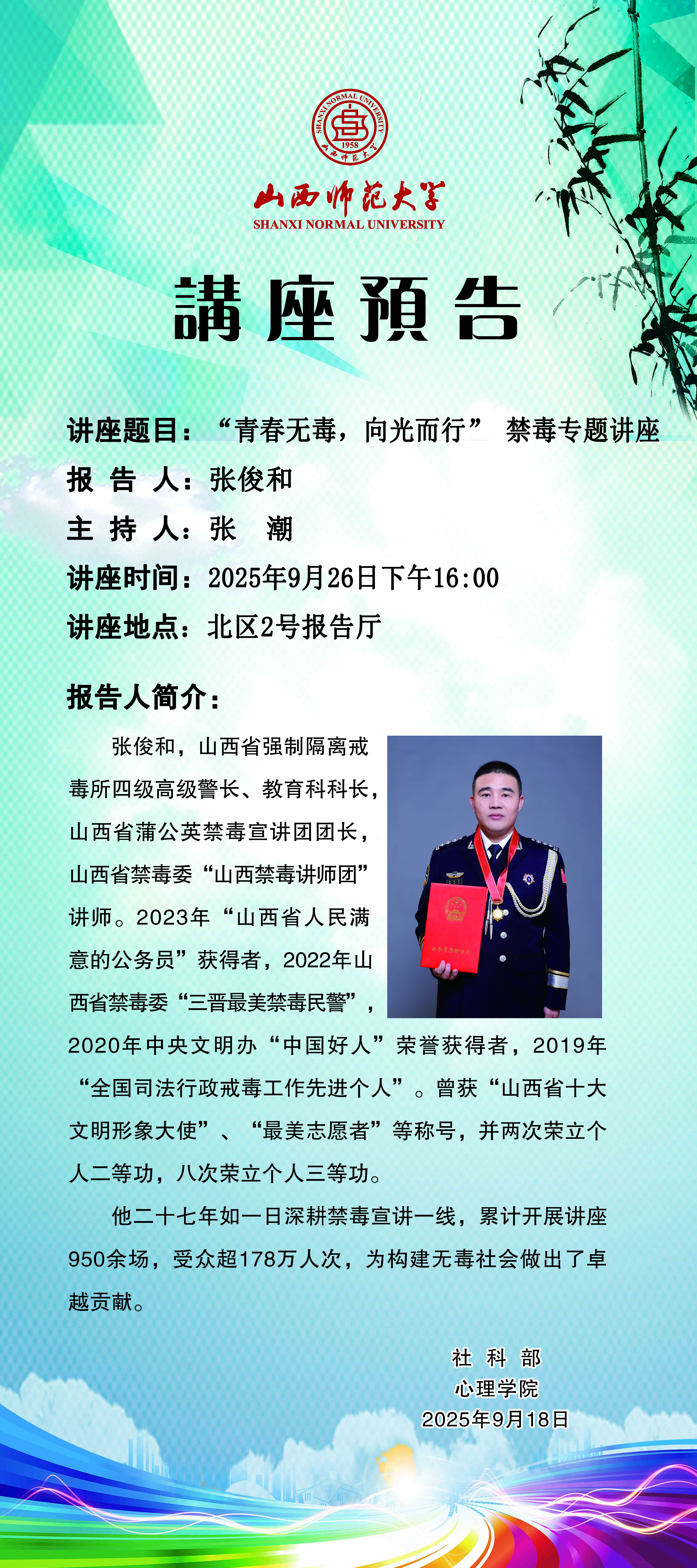 讲座预告:“青春无毒,向光而行”禁毒专题讲座