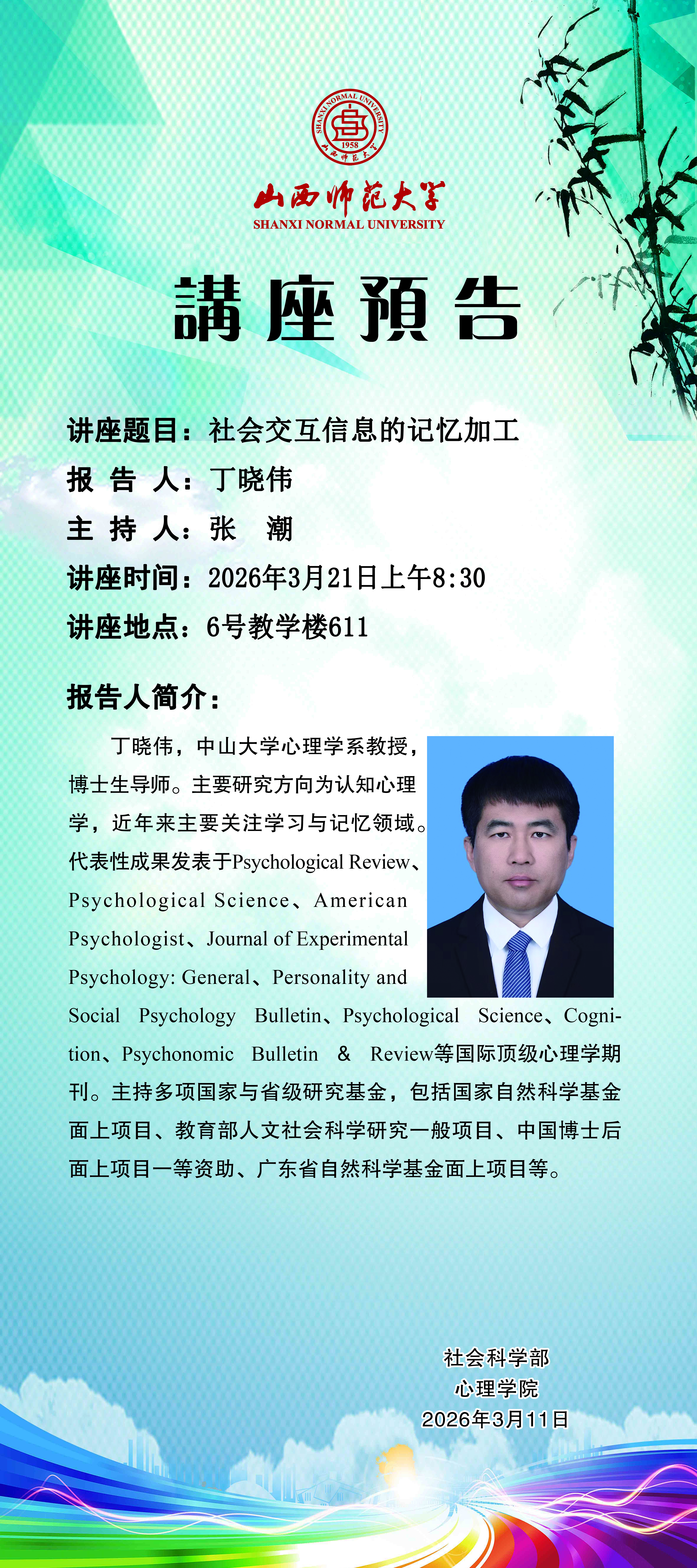 【讲座预告】社会交互信息的记忆加工