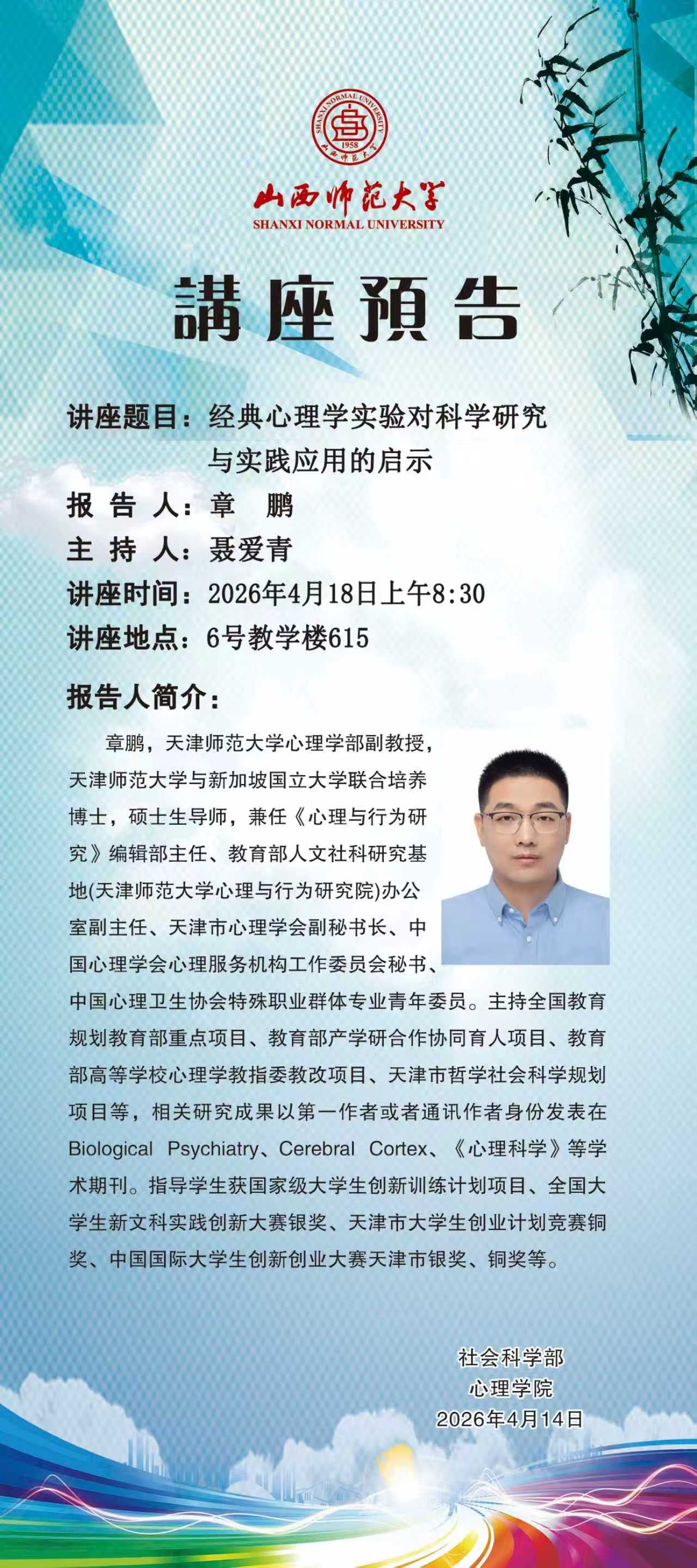 【讲座预告】经典心理学实验对科学研究与实践应用的启示