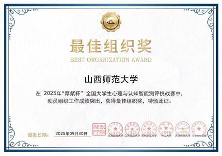 此次“厚粲杯”全国大学生心理与认知智能测评挑战赛多项荣誉的取得,是我院“以赛促教、以赛促学、以赛促创”育人理念的生动实践。未来,我院将继续深化教学改革,培养更多优秀人才,助力师生在全国舞台上持续绽放“山师风采”,续写学院发展的奋进篇章!