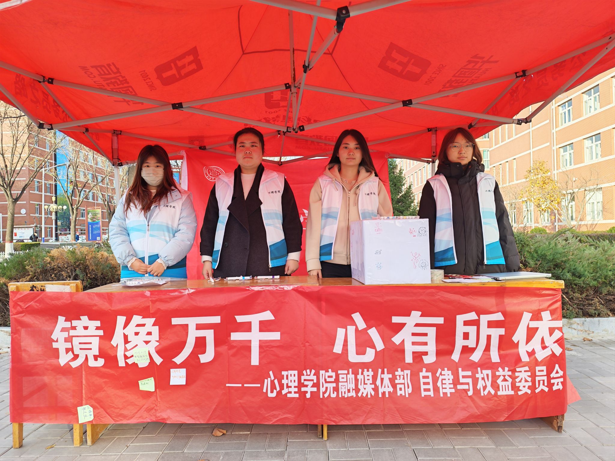 11月8日至9日,为致敬第26个中国记者节,我院融媒体部携手自律与权益委员会在三号与四号教学楼之间举办“镜间万象,心有所依”主题活动。以心理学的温暖视角为笔,以青春学子的赤诚之心为墨,为校园媒体人送上专属关怀,向这份承载着校园记忆与责任担当的职业致以最真挚的敬意。
