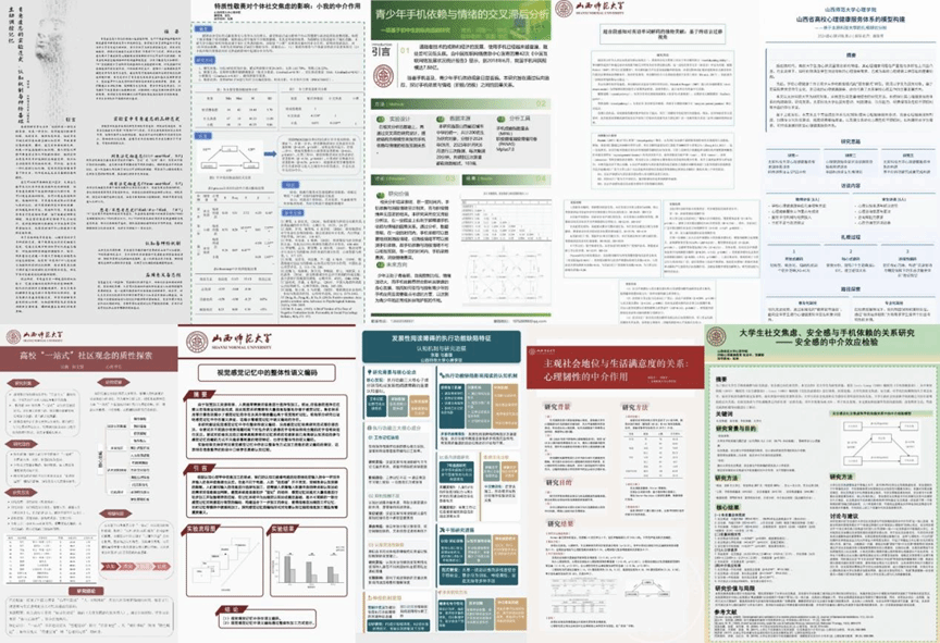 与此同时,6 号楼 615 室的展贴报告区同样精彩纷呈,10 项展贴论文以海报形式集中呈现,覆盖心理健康服务、认知机制、教育心理、青少年发展等多个前沿研究领域。这些展贴论文选题贴合现实需求、研究视角多元,从认知语言学、记忆心理学等维度切入,展现了学科交叉的创新思维。与会师生依次驻足浏览海报,围绕论文学术价值、研究方法规范性等展开探讨,现场互动频繁,学术交流氛围浓厚,有效拓宽了学术交流的广度与深度。