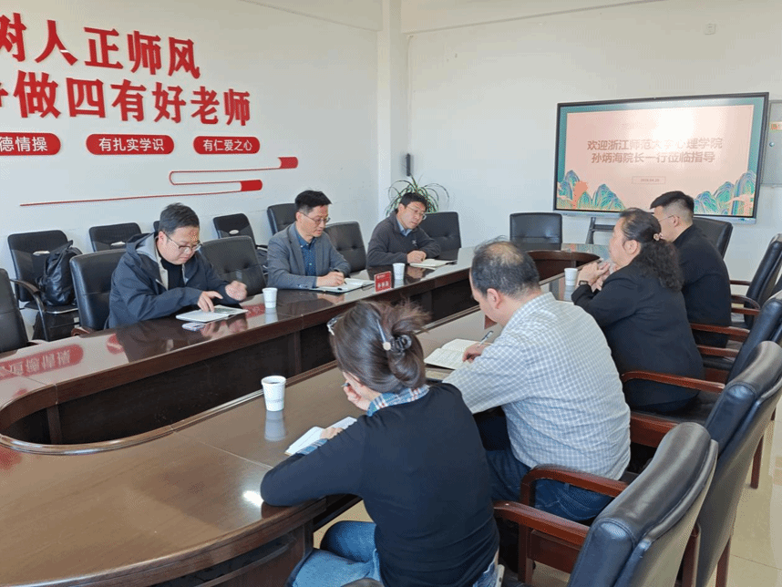 4月20日,浙江师范大学心理学院孙炳海院长一行到访我院开展交流指导。双方在学院会议室举行座谈会,围绕心理学学科建设、人才培养、科研合作及社会服务等方面进行了深入交流。张潮院长对来访嘉宾表示热烈欢迎,并系统介绍了学院的发展历程、办学特色及近年来在教学与科研方面取得的成果。来访专家认真听取汇报,对学院扎实的办学基础和稳步提升的发展态势给予了充分肯定。