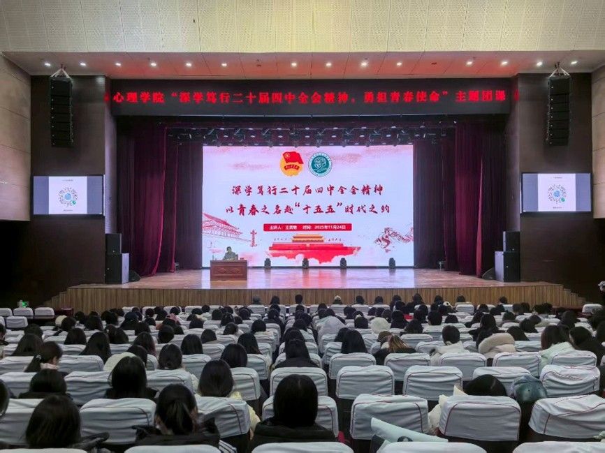 为深入学习贯彻党的二十届四中全会精神,引导我院青年掌握中国式现代化内涵,发挥心理学专业优势践行青年担当,11月24日晚,我院团委在南区科学会堂开展“深学笃行党的二十届四中全会精神,在中国式现代化征程中勇担青春使命”主题团课,院团委书记王美艳老师及全体学生参与。